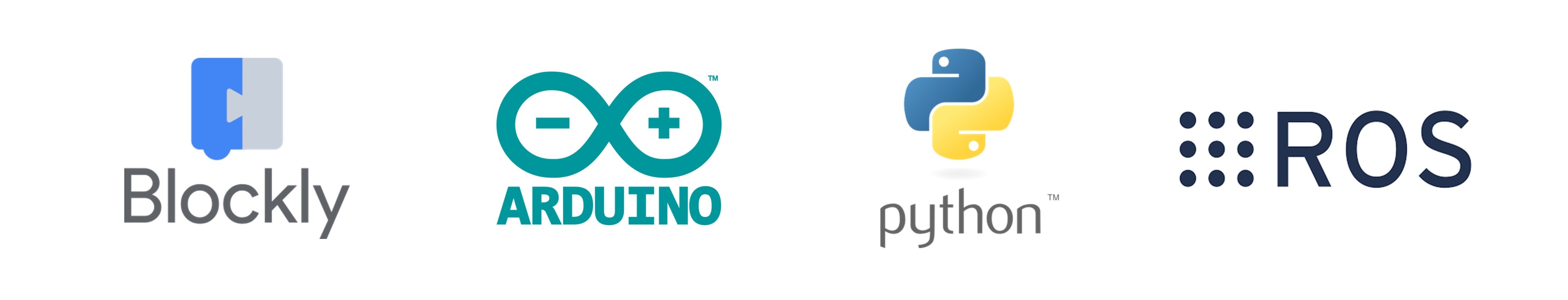 Supports serial comm. via USB, Blockly Support, ROS support limited(via Docker)